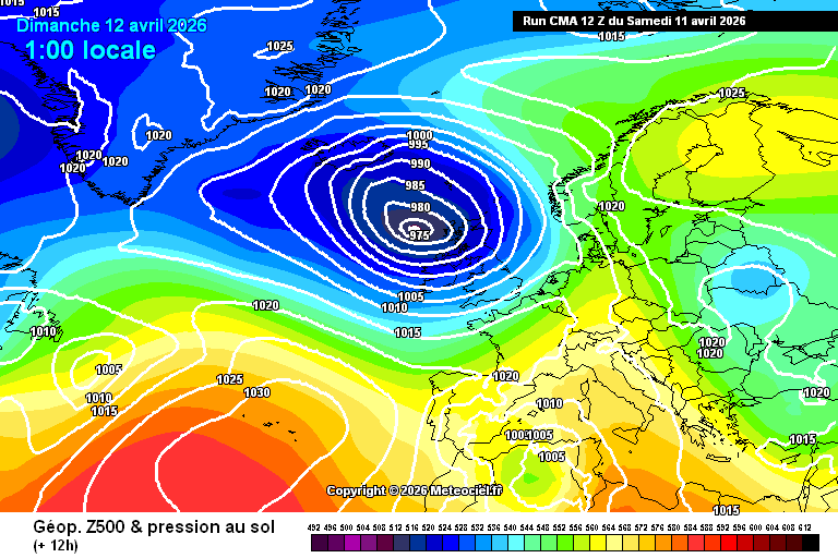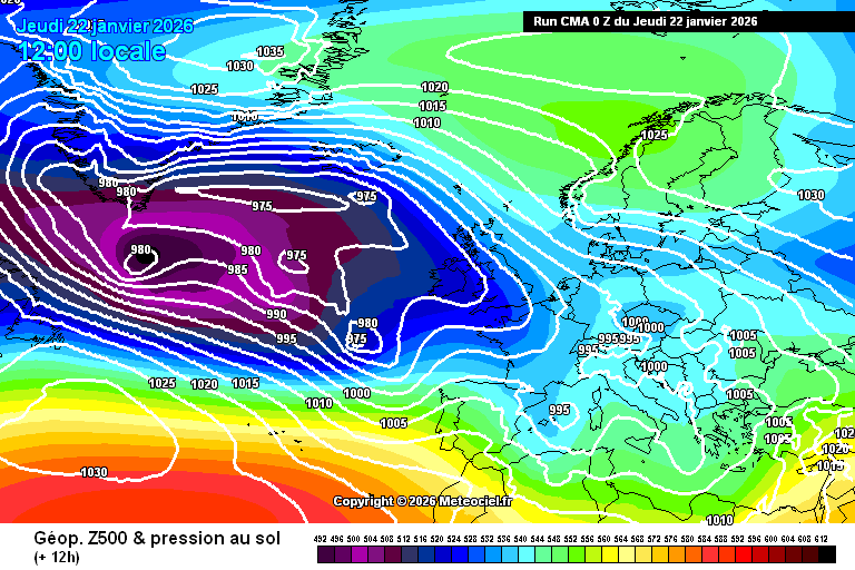Cartes du modèle CMA (Chine) | Run 0h Run 12h